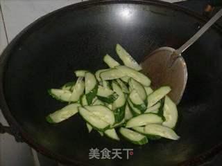 2. 锅中留少许油,下入腌制好的瓜片,翻炒至瓜片微微变软。